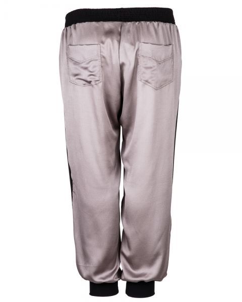 Edlel glänzende Hose im sportlichen Schnitt und schwarzen Streifen an den Seiten.