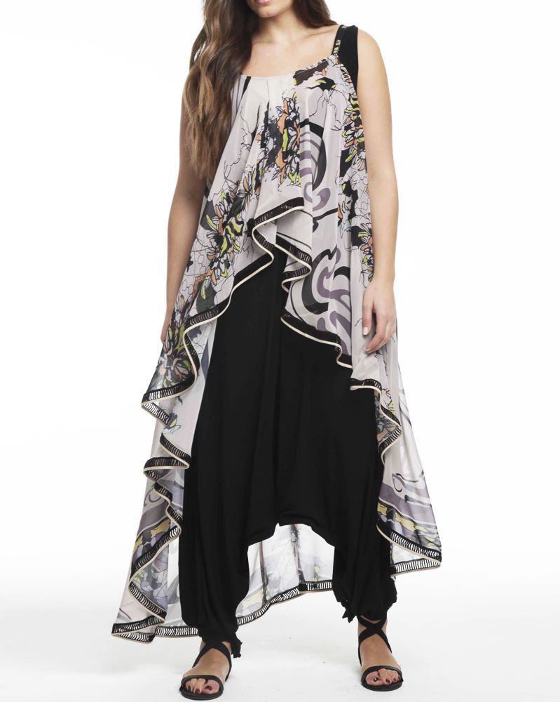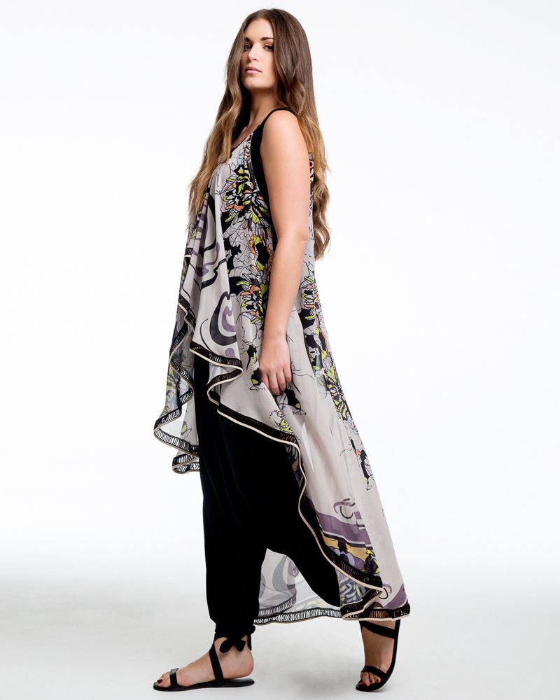 Dieses wunderschön geschnittene Sommerkleid schmeichelt der Figur und lässt sich lässig mit Leggings, Haremshosen oder einem engen Kleid drunter kombinieren. Der Stoff ist leicht, dünn und transparent. Grosser Ausschnitt im Rücken.