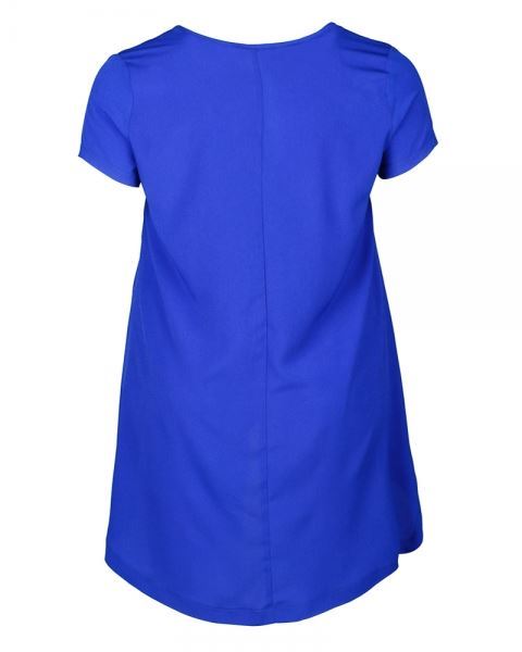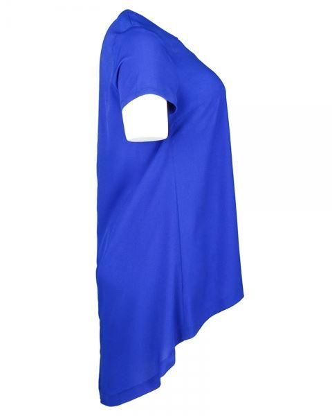 Top mit längerer Rückenpartie und rundem Halsauschnitt. A-Form.