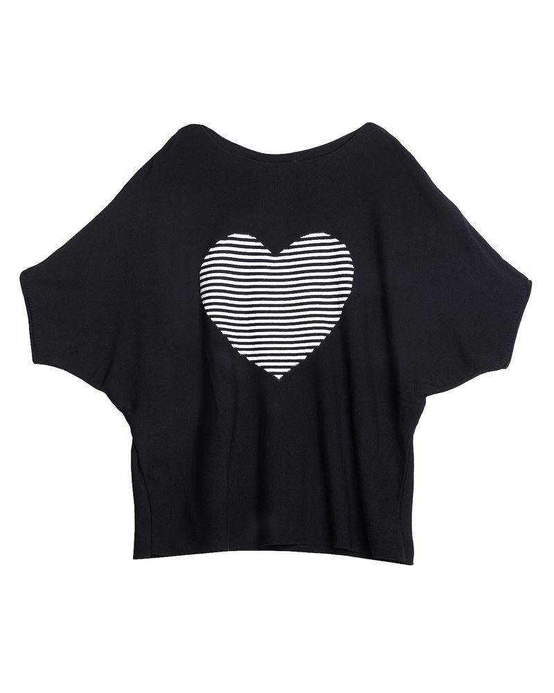 Sehr weicher Feinstrick mit eingestricktem Streifen-Herz-Motiv.