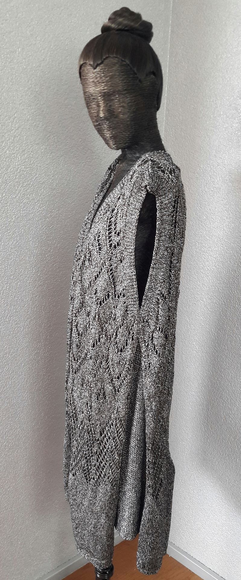 Strick-Poncho beige mit schwarz. Einheitsgrösse (one size).