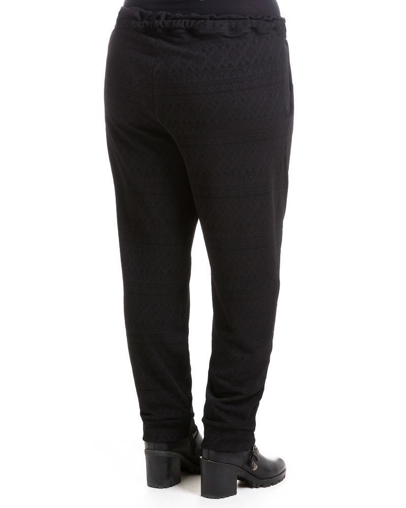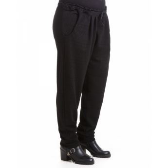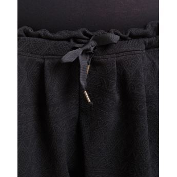 Pantalon confortable à la coupe décontractée est accentuée par la taille élastique pourvue d'une ceinture coulissante. Tissu à fine structure dote le modèle d'une note élégante.