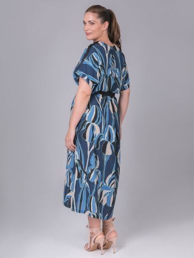 Bedrucktes Kleid in blau mit Rundhalsausschnitt und Seitenschlitzen.