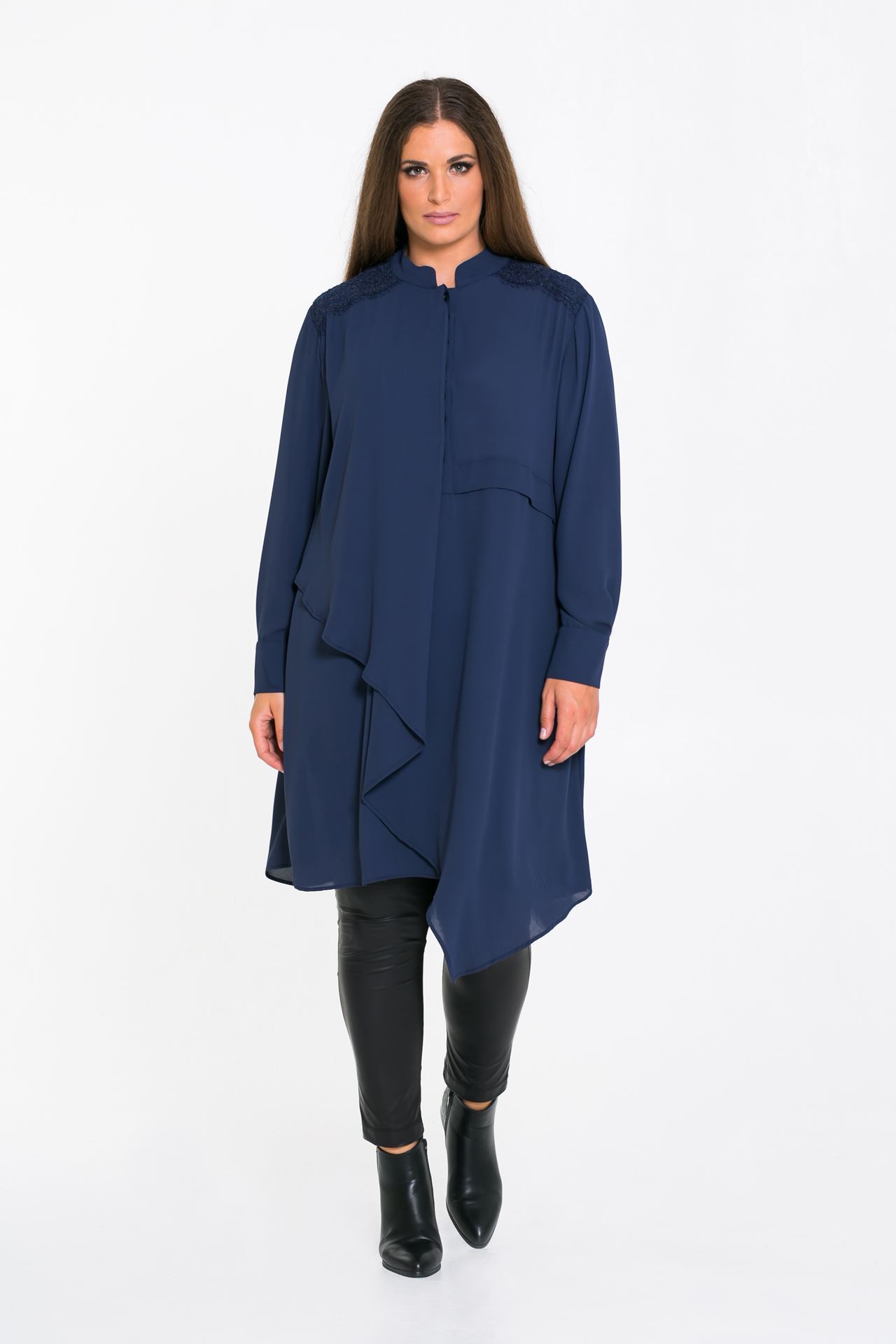 - weich fallender blauer Chiffon kombiniert mit Spitze