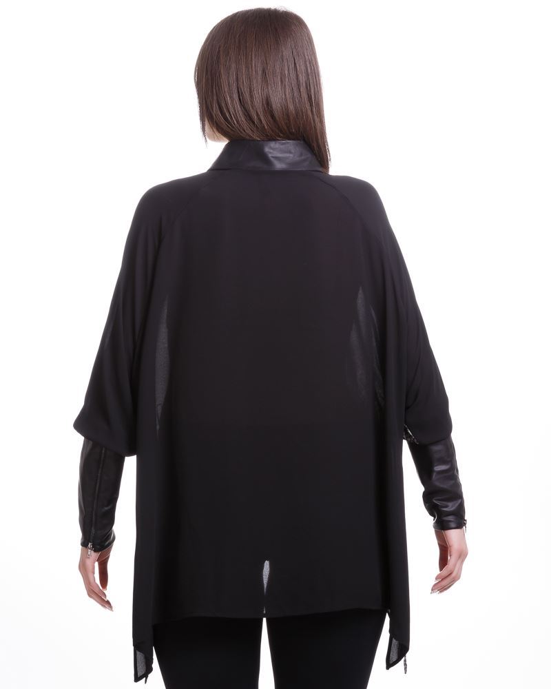 Bluse mit Schlangenmuster und Kunstleder Kragen/Ärmeln. Rückseite schwarz.