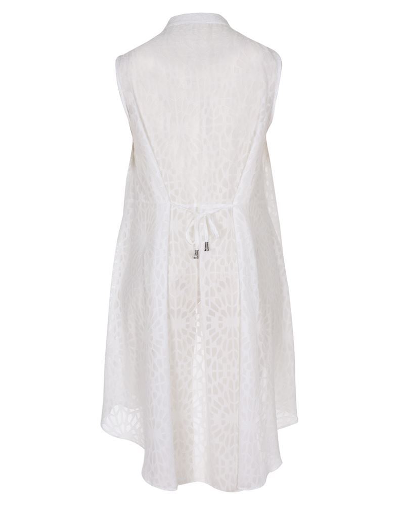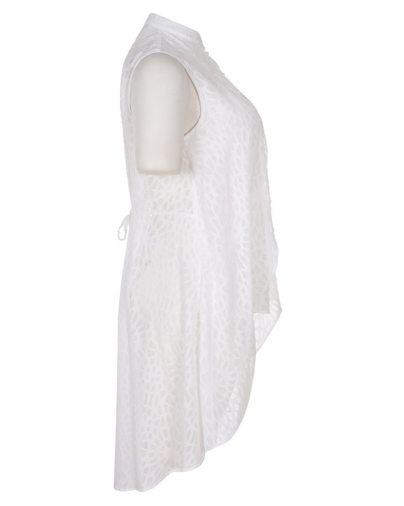 Romantische weisse Bluse mit Muster ohne Ärmel. Vorne kurz und hinten länger mit Schnürung.