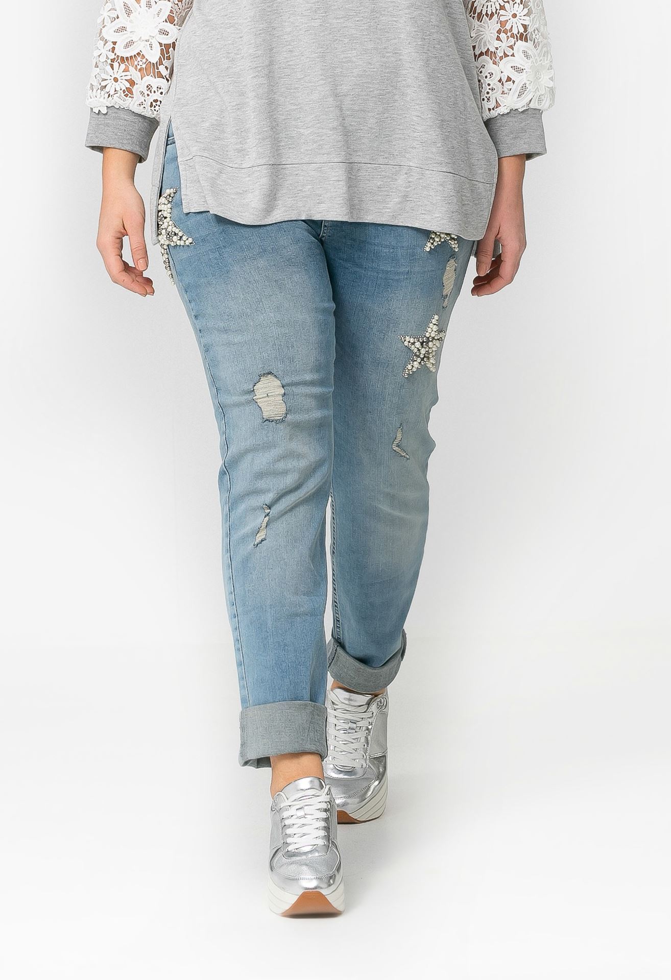 Helle Jeans im used-look mit Sternen-Deko aus Perlen.