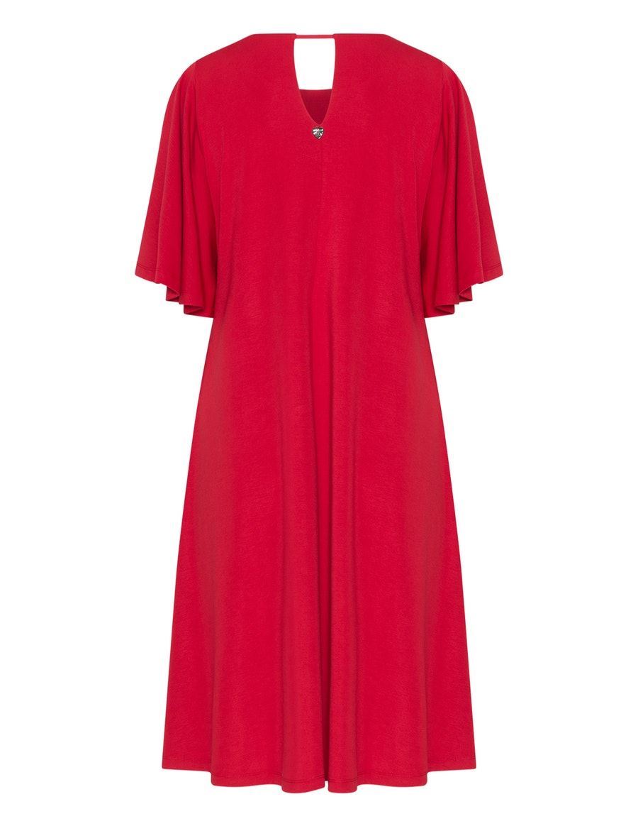 Mit diesem sinnlichen roten Kleid erweitern Sie Ihre schicke Garderobe. Der elastische Jersey aus weichem Viskosemix fühlt sich angenehm auf der Haut an und trägt mit der knieumspielenden A-Linie zu hohem Tragekomfort bei. Der Schmetterlingsärmel gibt Ihnen genügend Bewegungsfreiheit. Das modische Highlight ist ein reizvolles Cut-Out-Detail im Nacken.