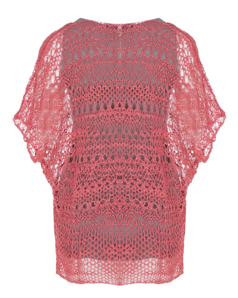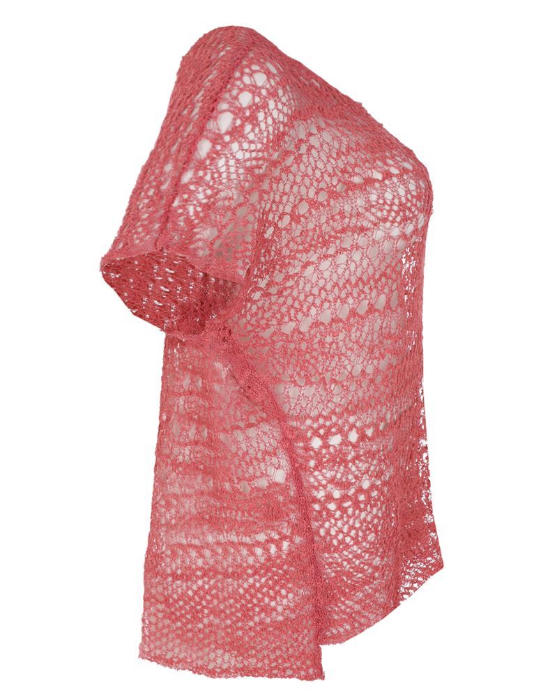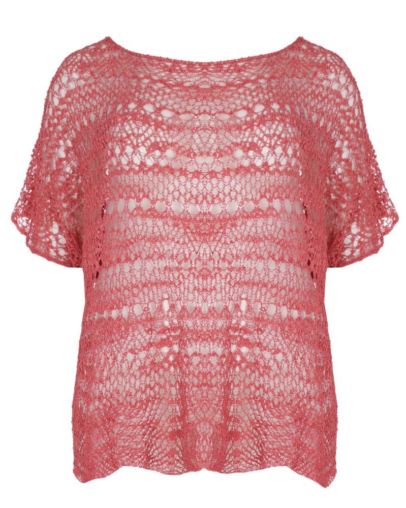 Kurzarm Netz-Top in den Farben koralle oder aquablau. Kein Tanktop für darunter im Preis inbegriffen.