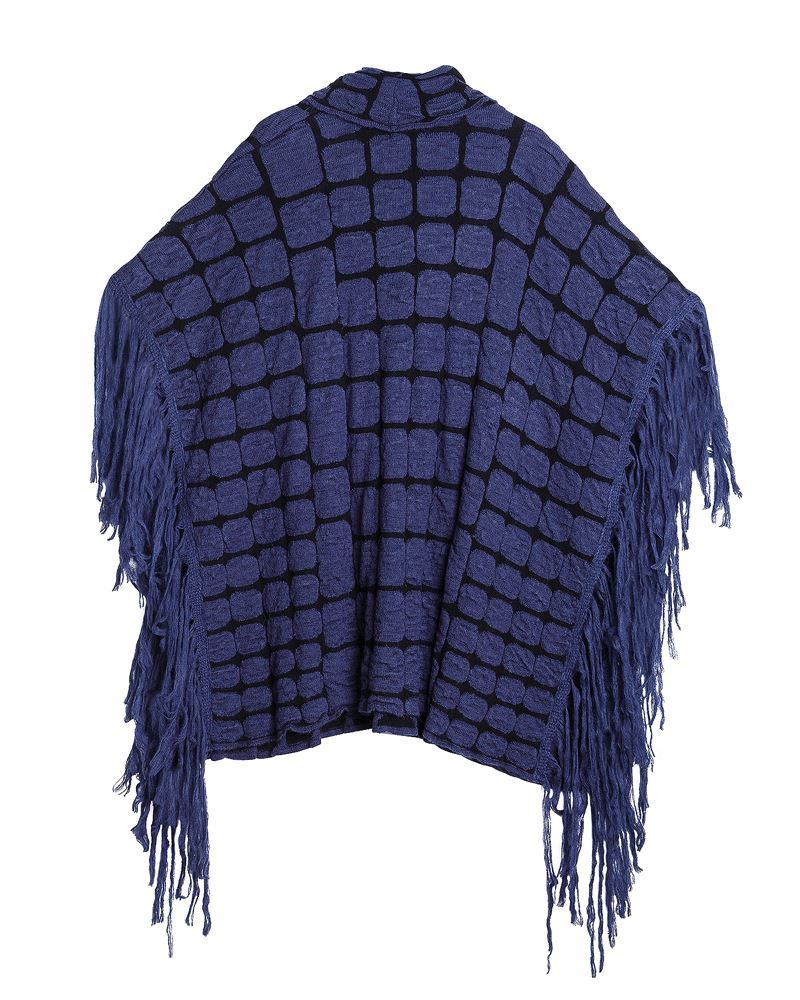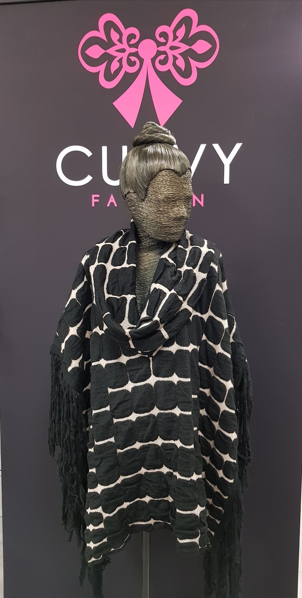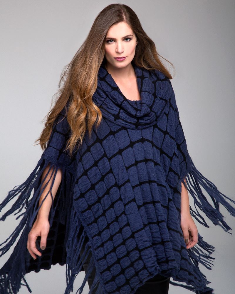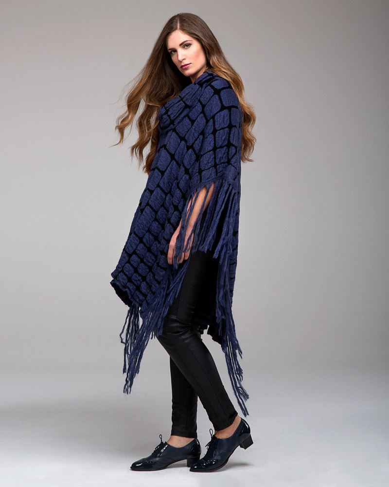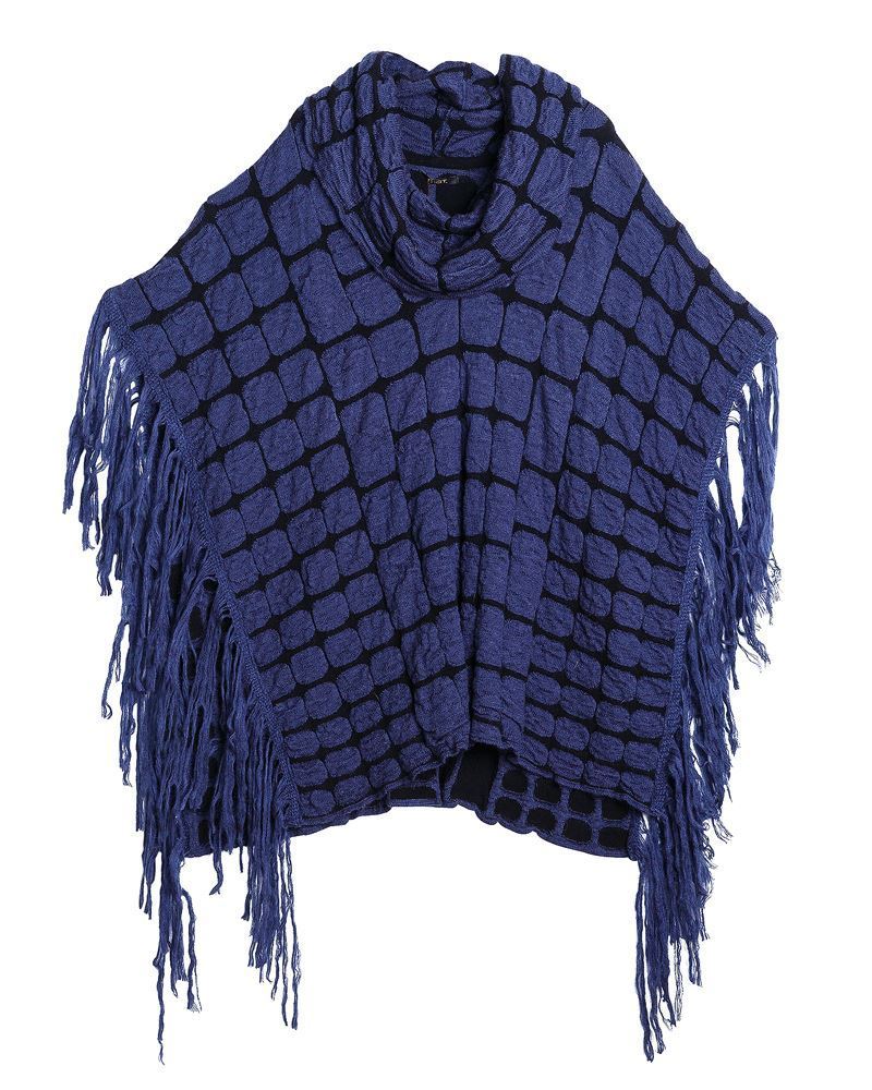 Strick-Poncho beige mit schwarz.Einheitsgrösse (one size).