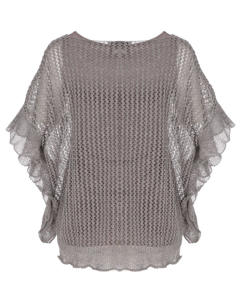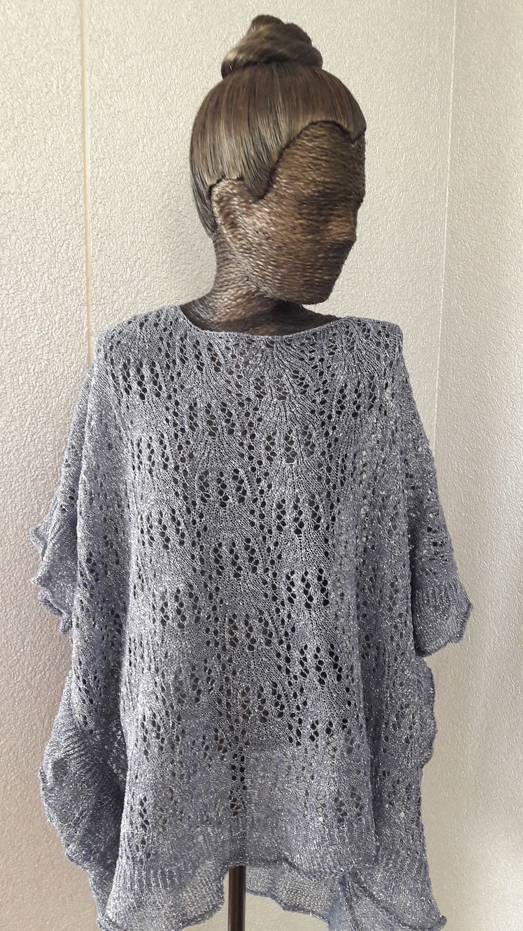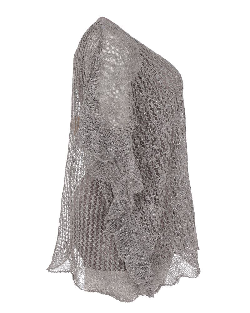 Verspieltes Häckel-Top mit Volants. Ist nur noch in indigoblau gemischt mit einem eleganten Silberfaden verfügbar. Tanktop auf dem Bild ist nicht dabei.