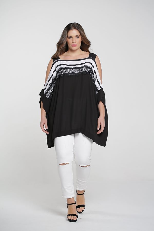 Bring out your feminine side with this pretty top by Mat. Fashioned from fluid chiffon, the design has a flattering boxy cut that skims over your curves. The monochrome striped print is easy to combine, while the cold shoulder effect allows you to showcase some skin.