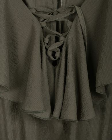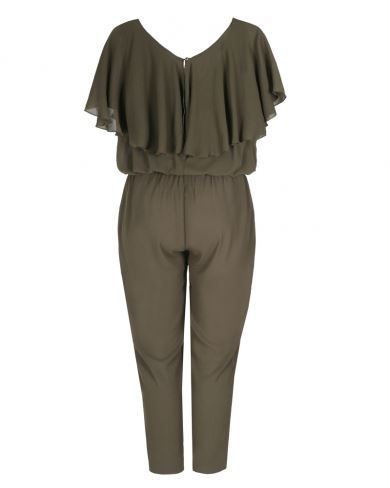 Cette combinaison bleu foncé présente un design à la fois fantaisiste et élégant. Son volant virevoltant est associé à la découpe à la nuque, ce qui complète le look avec beaucoup de style. Votre décolleté sera par ailleurs particulièrement mis en valeur par le laçage.